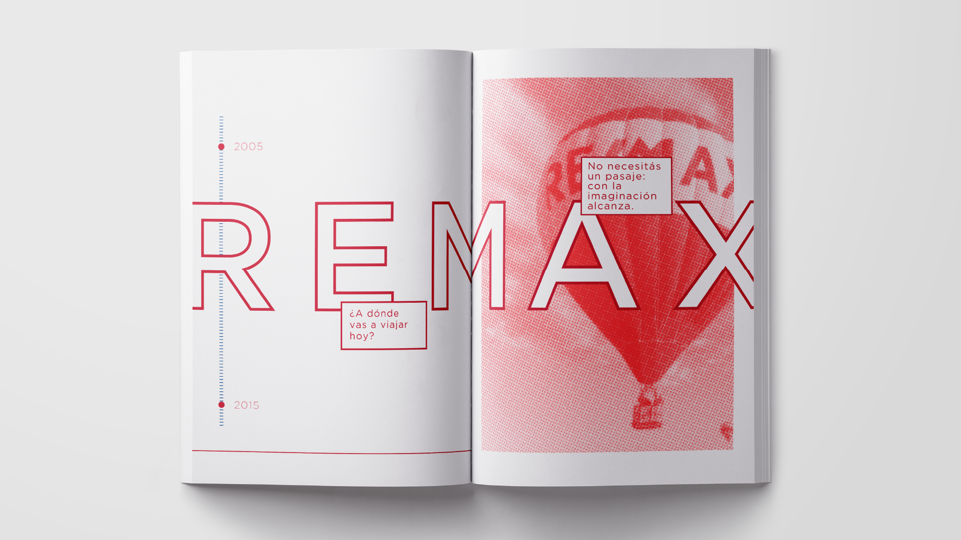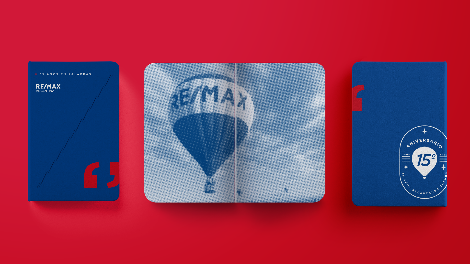 Creamos un libro aniversario y un gift box por los 15 años de RE/MAX en Argentina. Todas las piezas fueron pensadas para entregar en un evento para prensa, cuyo objetivo era revelar la historia de amor y emprendedorismo detrás de los dos fundadores de la franquicia en suelo argentino: Dotti Peñate, una joven soñadora y carismática nacida y criada en Islas Canarias, que conocía nuestro país gracias a las viñetas de Mafalda; y Sebastián Sosa, un aventurero cordobés que, después de participar en misiones solidarias por Bielorrusia, vivió un encuentro que le cambió la vida.