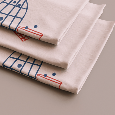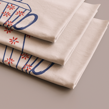 DETALLES | Medida: 35 x 43 cm | Tela: Tussor de algodón | Terminación: Pasador colgante con cinta hilera